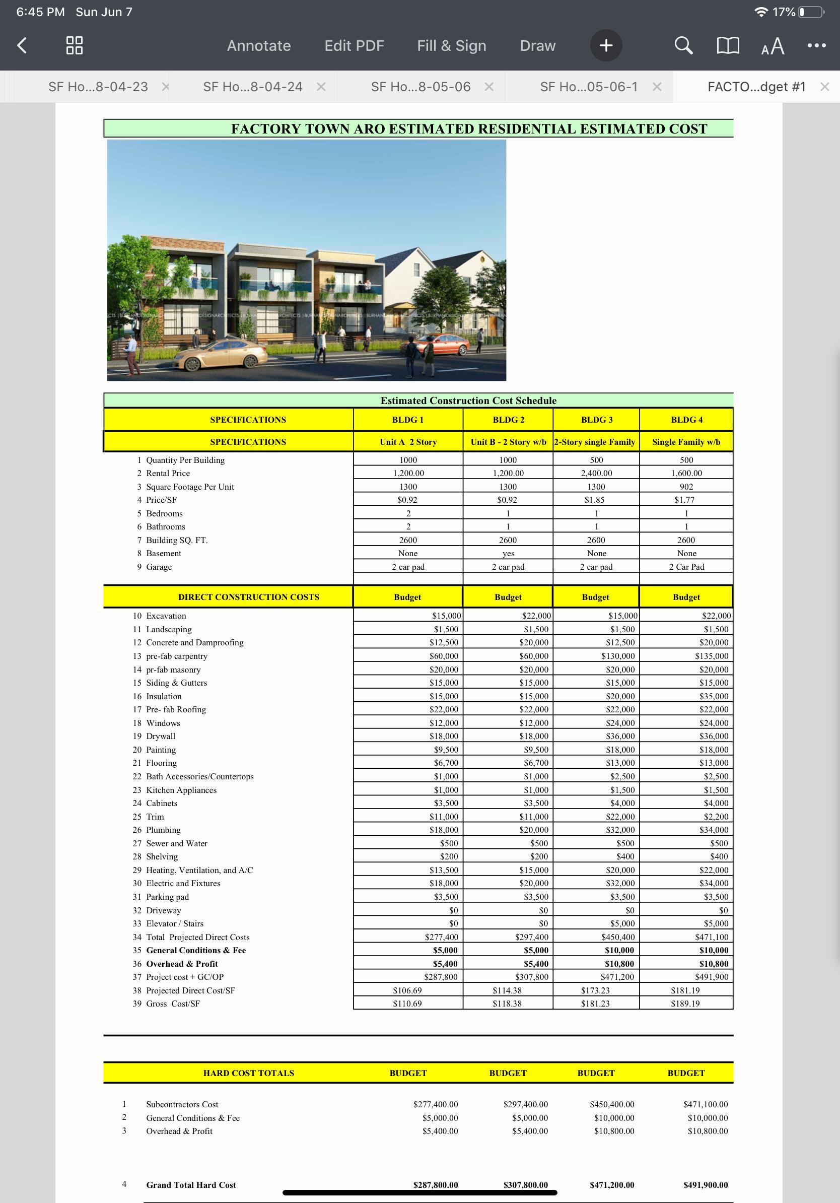 PRE-FABRICATED HOME COST STRUCTURE & SOURCES AND USAGE STATEMENT