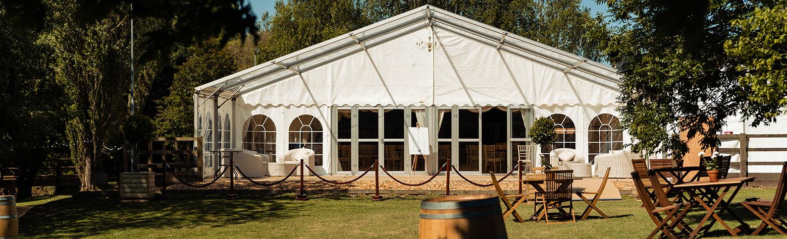 HAVE THE SERVICE OF A 5-STAR HOTEL BUT EXACTLY WHERE YOU WANT IT. MARQUEES ARE PERFECT FOR THE SUMMER MONTHS AND CAN ADD CAPACITY TO YOUR CHOSEN VENUE, AND IT ALSO MEANS YOU CAN EVEN HOST THE WEDDING OR EVENT AT THE FAMILY HOME.