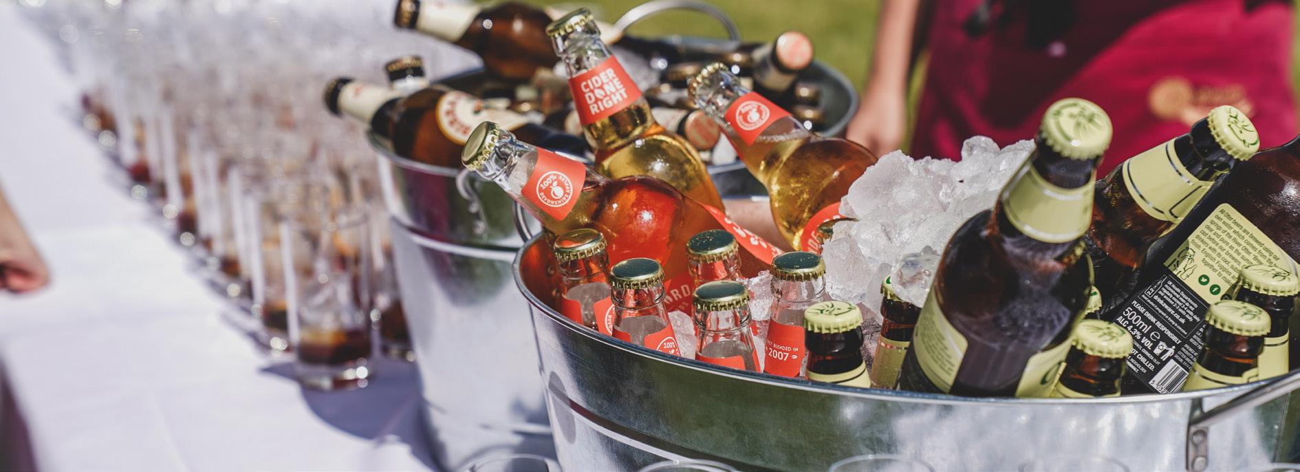 Option 1 is for supplying your own drinks. We will serve and pour your drinks for you but you may need to think about hiring chillers, glassware, and equipment if you are having a marquee wedding or event. Don’t worry we can supply and source all of this for you once we know the drink requirements from refrigeration to bottle openers, ice buckets to recycling, we will ensure you have everything needed.