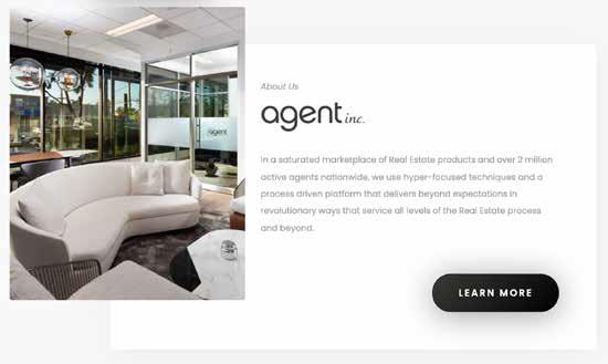 This combined exper tise and experience has taught John to listen to the marketplace and to the needs of agents. The creation of Agent inc. is a result of John’s goal of helping the new contemporar y agent function at the highest level. Agent inc uses hyper-focused techniques and a process driven platform that delivers beyond expectations in revolutionar y ways that ser vice all levels of the Real Estate process and beyond.
