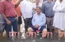 EX-U'KHAND CM SITS ON CHAIR ON A WATERLOGGED ROAD IN PROTEST
