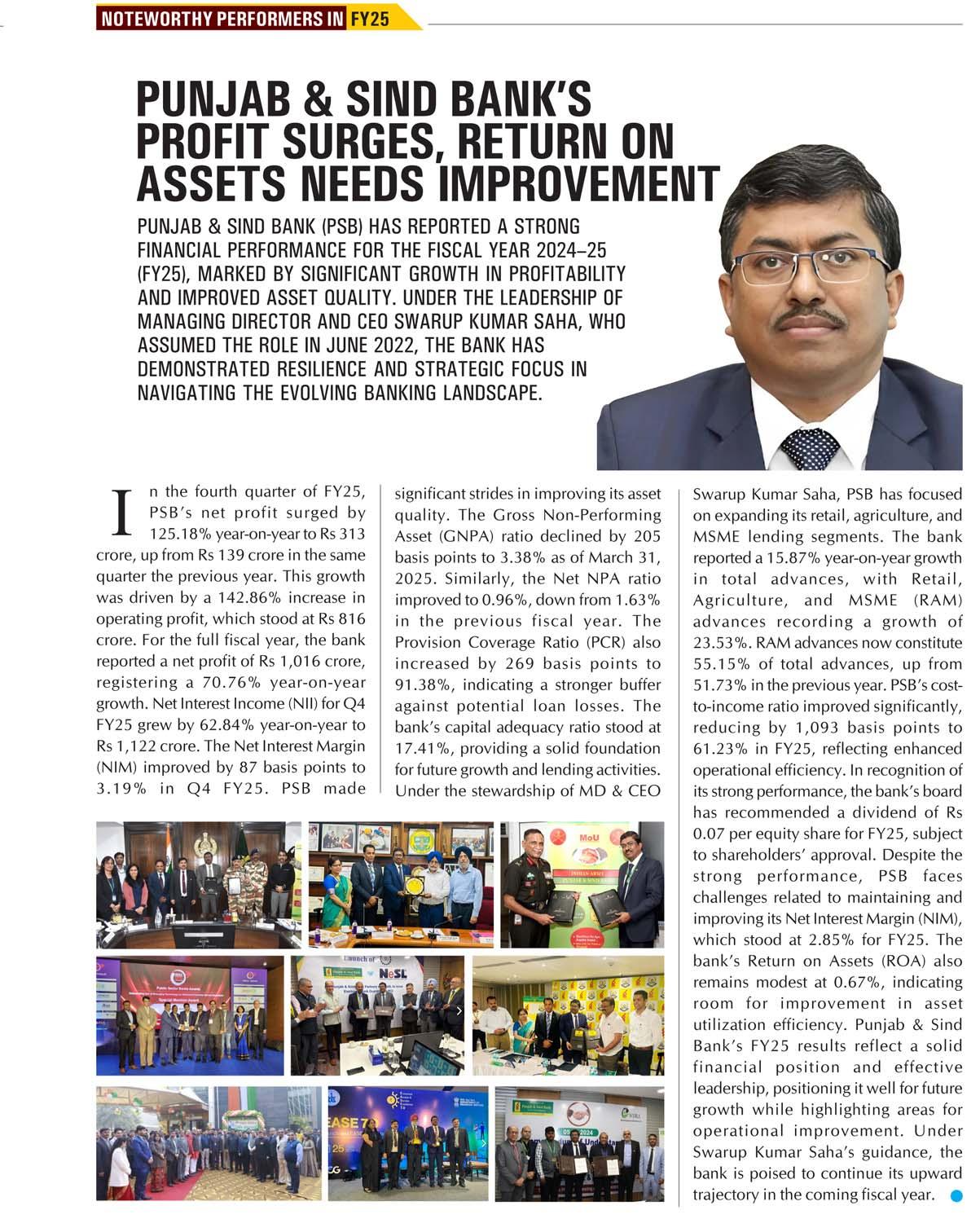 J&K BANK’S STELLAR FY25 PERFORMANCE, LED BY MD & CEO AMITAVA CHATTERJEE, IS A CASE STUDY IN STRATEGIC RESILIENCE. THE BANK COMPLETED 3 CONSECUTIVE YEARS OF LIFETIME HIGH ANNUAL PROFITS THIS PAST FISCAL. AND THIS OUTPERFORMANCE CONTINUES UNABATED IN Q1 OF THIS FISCAL. ITS HOME STATE WITNESSED A MAJOR DISRUPTION DUE TO TERRORIST ATTACKS AND THE SUBSEQUENT WAR, BUT THE BANK HAS LEVERAGED TRUST, OPERATIONAL DISCIPLINE, AND DIGITAL TRANSFORMATION TO OVERCOME REGIONAL RISKS AND ESTABLISH ITSELF AS A PLATFORM OF NATIONAL RELEVANCE. WITH STRONG ASSET QUALITY, TECH POWERED GROWTH, CSR ORIENTATION, AND KEEN REGIONAL INSIGHT, ITS AMBITION TO REACH RS 5,000/ CRORE PROFITS BY FY30 SEEMS ATTAINABLE.