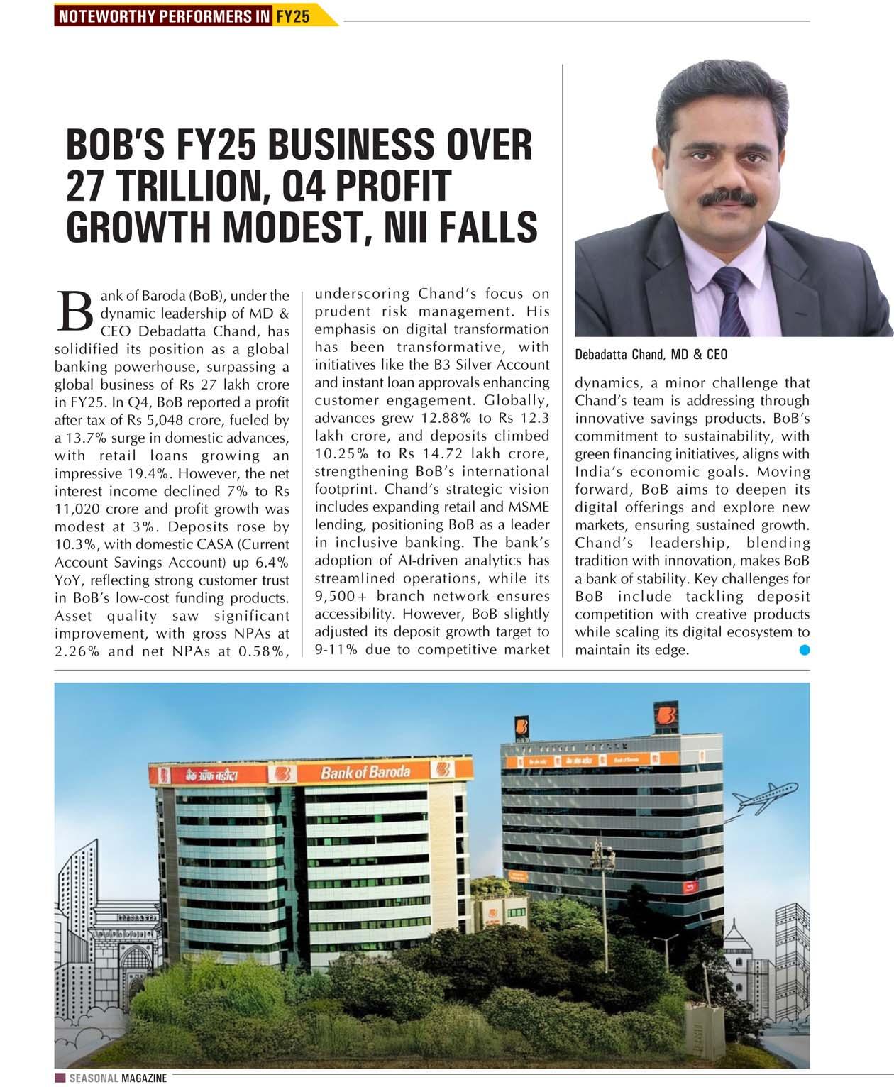 instrumental in positioning Bank of India as a growing public sector lender with renewed focus and stability. While the financials are largely encouraging, some headwinds persist. The bank’s Global Net Interest Margin (NIM) declined to 2.82% in FY25, down from 2.97% in FY24. This compression, though in line with broader industry trends, underscores the challenge of sustaining lending profitability in a competitive and high-liquidity environment. Balancing loan growth with healthy margins will be a key focus in the coming quarters. Reaffirming its financial strength, BoI’s Board recommended a dividend of Rs 4.05 per equity share for FY25. The move aligns with the bank’s strategy of rewarding shareholders while retaining adequate capital for growth. Bank of India’s FY25 performance reflects a story of consistent execution, visionary leadership, and improved financial health. As the bank looks ahead to FY26, it does so with a stronger balance sheet, sharper focus, and renewed confidence, which are hallmarks of a public sector bank on the rise.