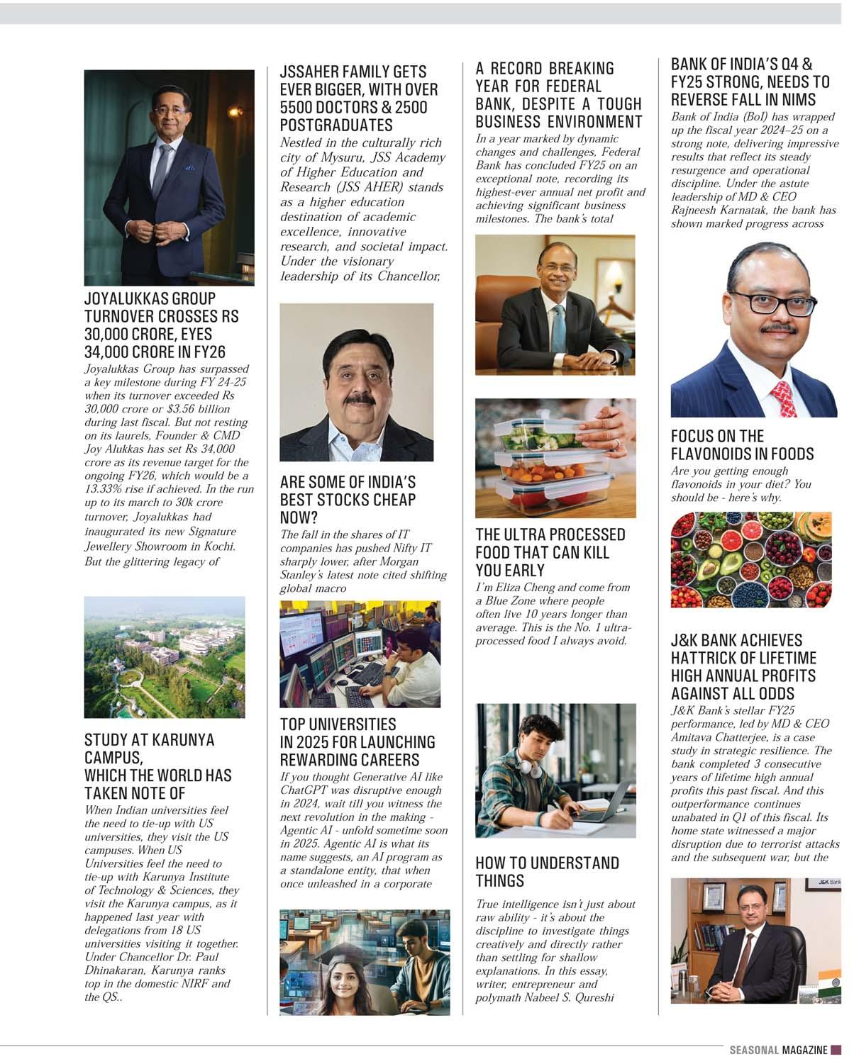 IN A YEAR MARKED BY DYNAMIC CHANGES AND CHALLENGES, FEDERAL BANK HAS CONCLUDED FY25 ON AN EXCEPTIONAL NOTE, RECORDING ITS HIGHEST-EVER ANNUAL NET PROFIT AND ACHIEVING SIGNIFICANT BUSINESS MILESTONES. THE BANK’S TOTAL BUSINESS SURGED PAST THE RS 5 LAKH CRORE MARK, WHILE NET PROFIT CROSSED RS 4,000 CRORE, BOTH FOR THE FIRST TIME, MAKING THIS FINANCIAL YEAR A TURNING POINT IN ITS GROWTH JOURNEY. WITH THESE MILESTONES, FEDERAL BANK HAS FIRMLY DEMONSTRATED ITS ABILITY TO SUSTAIN PROFITABILITY, BUILD OPERATIONAL ROBUSTNESS, AND EMBRACE FORWARDLOOKING STRATEGIES UNDER THE DYNAMIC LEADERSHIP OF ITS NEW MANAGING DIRECTOR & CEO, KVS MANIAN.