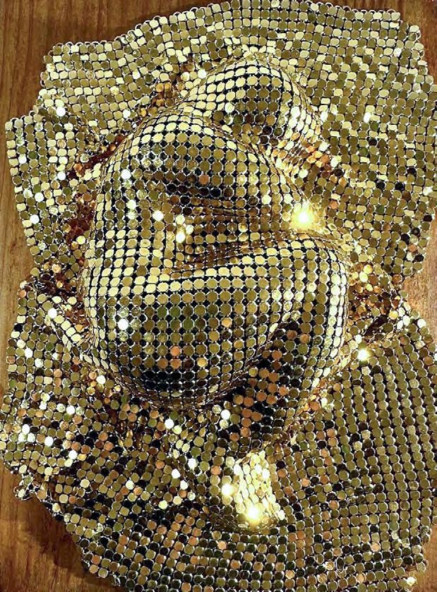 For the works in this exhibition Barker was inspired by the iconic Australian fashion brand, Glomesh, first designed and manufactured in Bondi in the late 1950s. With the help of Capral and Artforms, she has modelled blankets on an upscale version of Glomesh and pushed the creative boundaries of aluminium.
