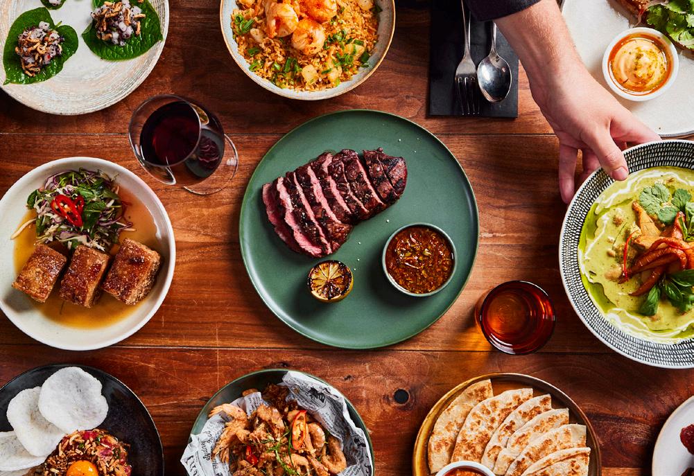 Each dish offers contrasting flavours as seen in small plates such as Kingfish Ceviche, Avocado, Watermelon Salsa, Green Talay, Black Sesame Cracker; before offerings like Sticky Mekhong Lamb Ribs, Thai Whiskey, Shallots. Those with heartier appetites opt for Pork Belly, Vietnamese Slaw, Caramel and Black Vinegar, or Scotch Fillet and Nam Jim Jaew.