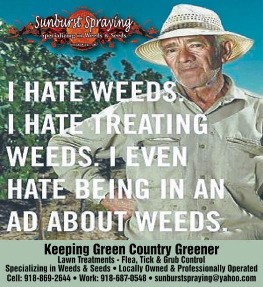 Green Country Living is published by the Muskogee Phoenix. Contents of the magazine are by the Muskogee Phoenix. No part of this publication may be reproduced, stored in a retrieval system, or transmitted in any form or by any means, electronic, mechanical, photocopying, recording or otherwise, without the prior consent of the Muskogee Phoenix. Green Country Living, P.O. Box 1968, Muskogee OK 74402. email publisher@muskogeephoenix.com - Editorial: (918) 684-2929 Advertising and distribution: (918) 684-2804