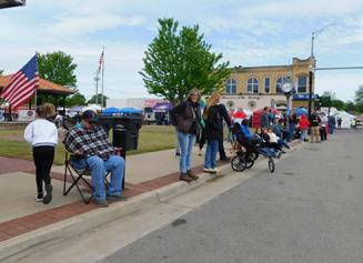 Families gather downtown to wave at floats while children pick up candy thrown onto the street during the 54th Annual Azalea Parade.