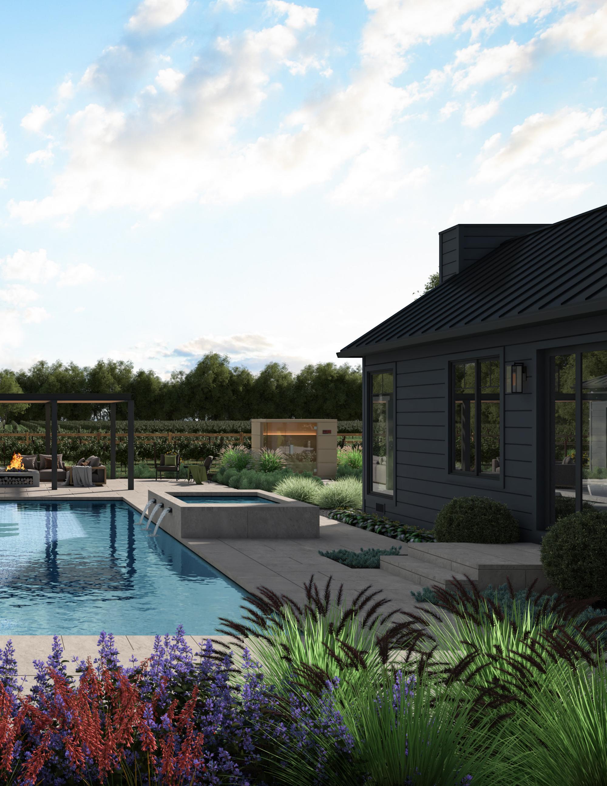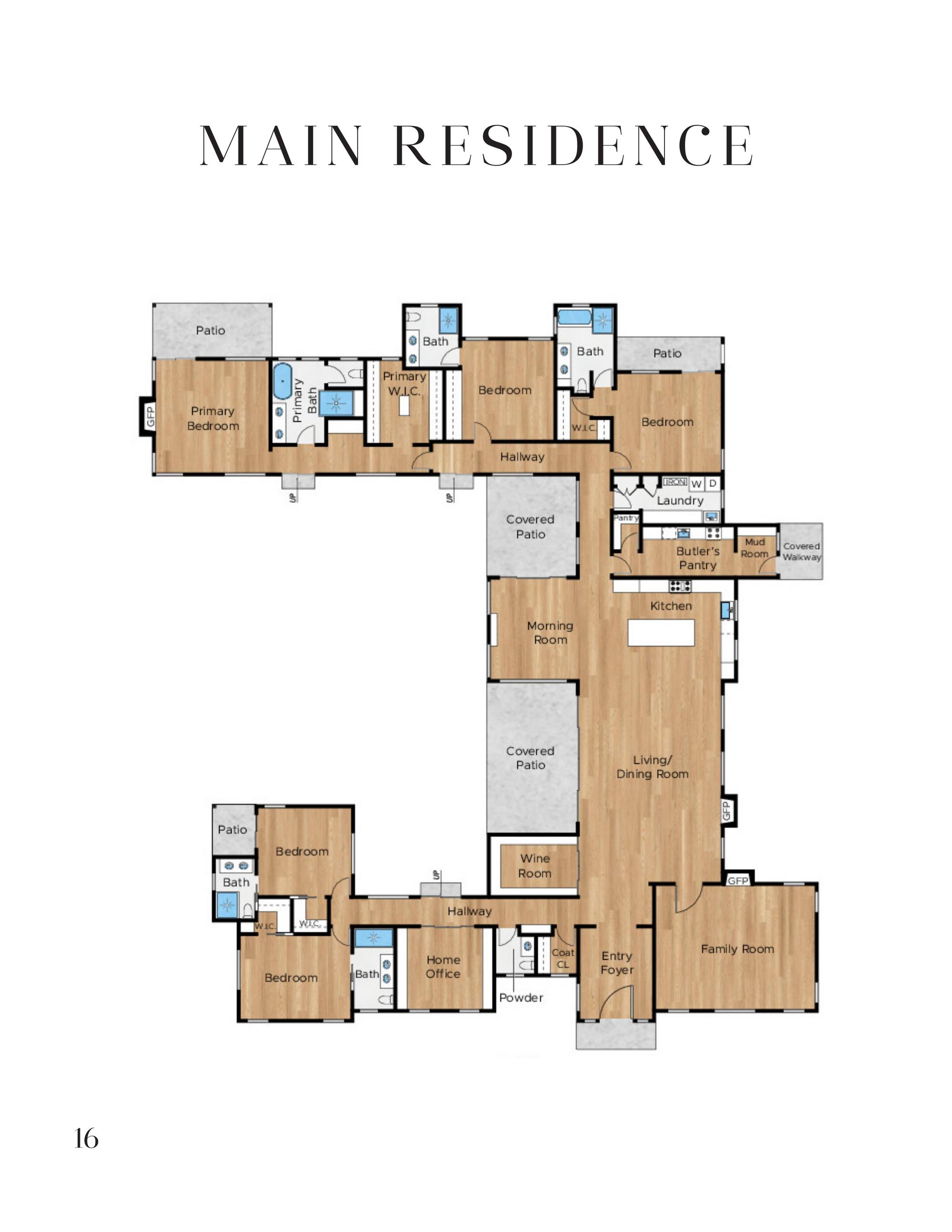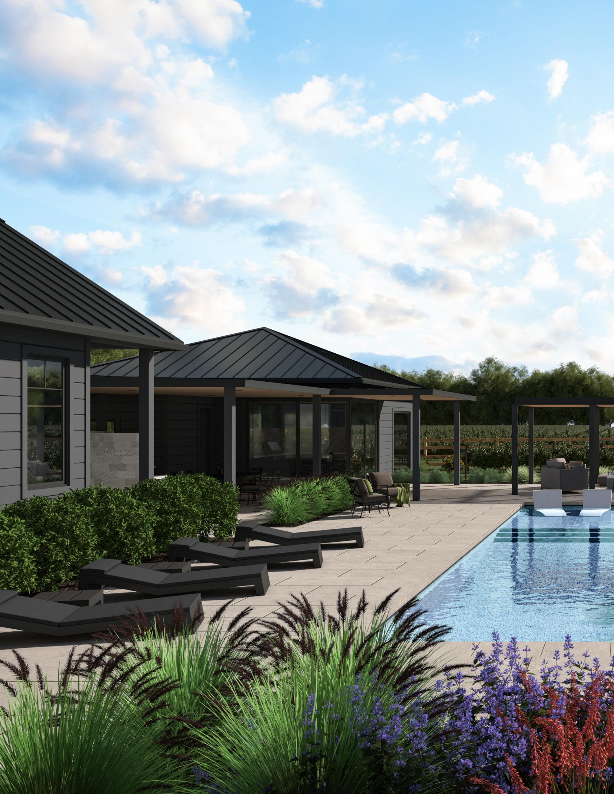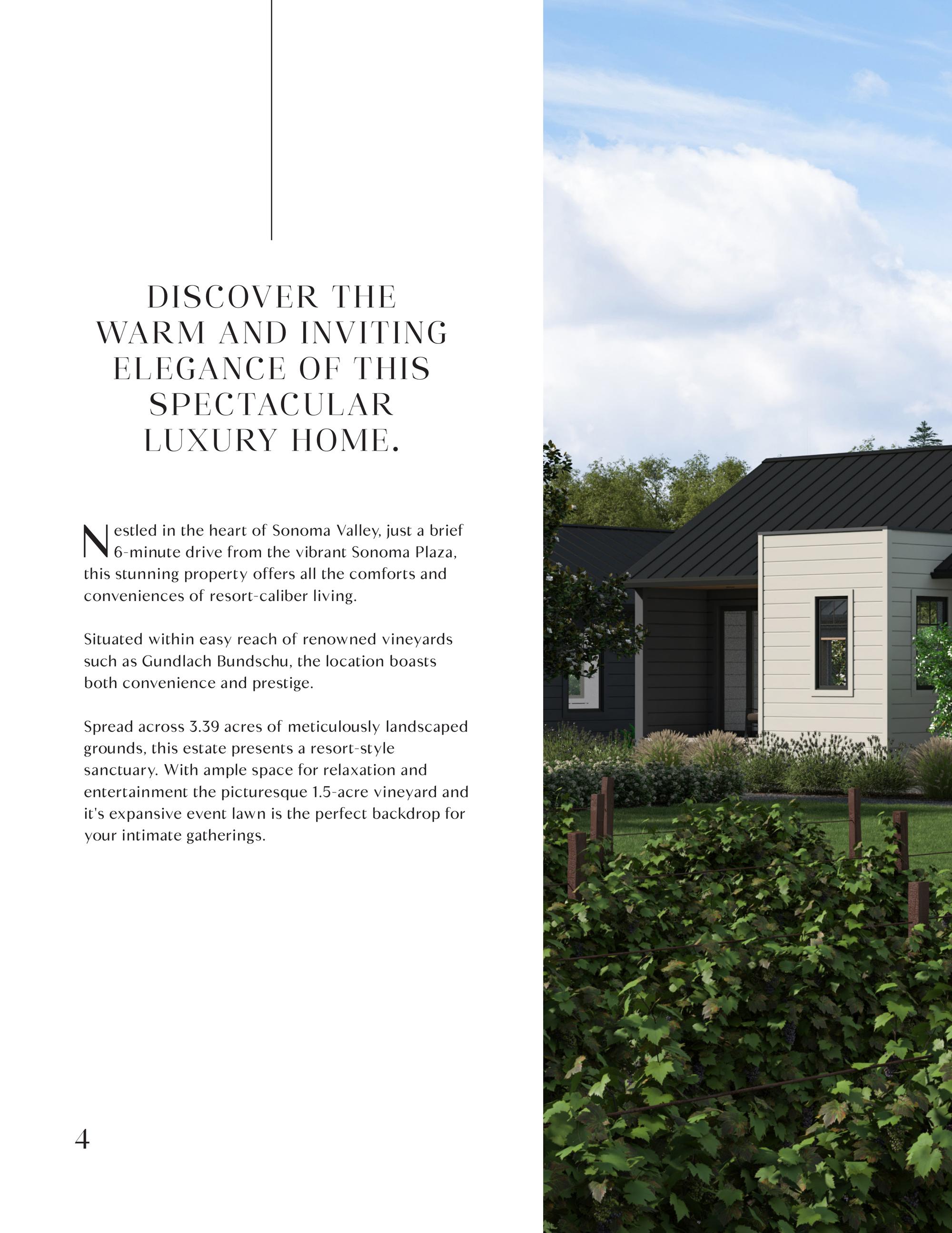 On 3.39 gated acres this sophisticated new five-bedroom home—combines the charm of farmhouse style with the clean lines of contemporary architecture and will offer all the comforts and conveniences of resort-caliber living. The 5,458-square-foot floor plan is configured to surround an alluring courtyard, with three bedrooms in the main wing of the home and two in a private guest wing. Highlights will include a living room with a DaVinci Maestro fireplace, a family or media room with a wet bar and its own fireplace, an 860-bottle temperature-controlled wine room, an office, and a kitchen with an island and countertops of Calacatta marble; white oak cabinets; and Sub-Zero, Wolf, and Miele appliances. Entertainers will appreciate the butler’s pantry and auxiliary kitchen, which provides ample storage and Wolf appliances. Three of the bedrooms—including the owner’s suite. Plans for ADU and Guest House. Seven bedroom septic.