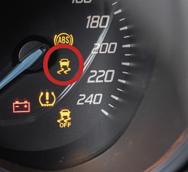 C. Het stabiliteitssysteem (ESP) treedt in werking.