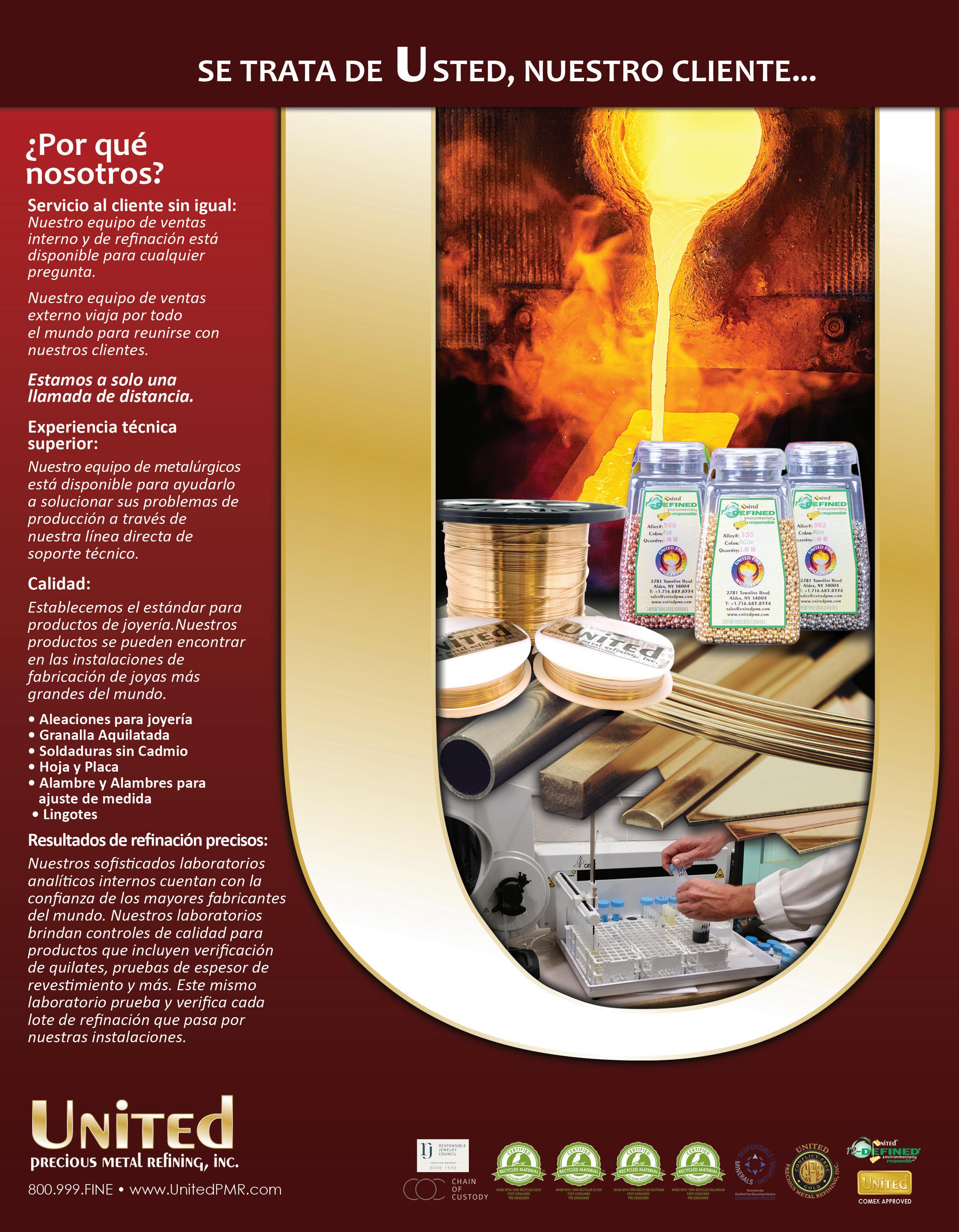 Su fuerte presencia en nuestro país al convertirse en un aliado estratégico para la industria joyera mexicana es, principalmente, por su capacidad competitiva que lo posiciona con los más altos estándares de calidad y responsabilidad social internacional. United está certificado como proveedor de metales preciosos 100% reciclados por SCS Global, ventaja que llega a satisfacer las necesidades de muchos fabricantes nacionales.