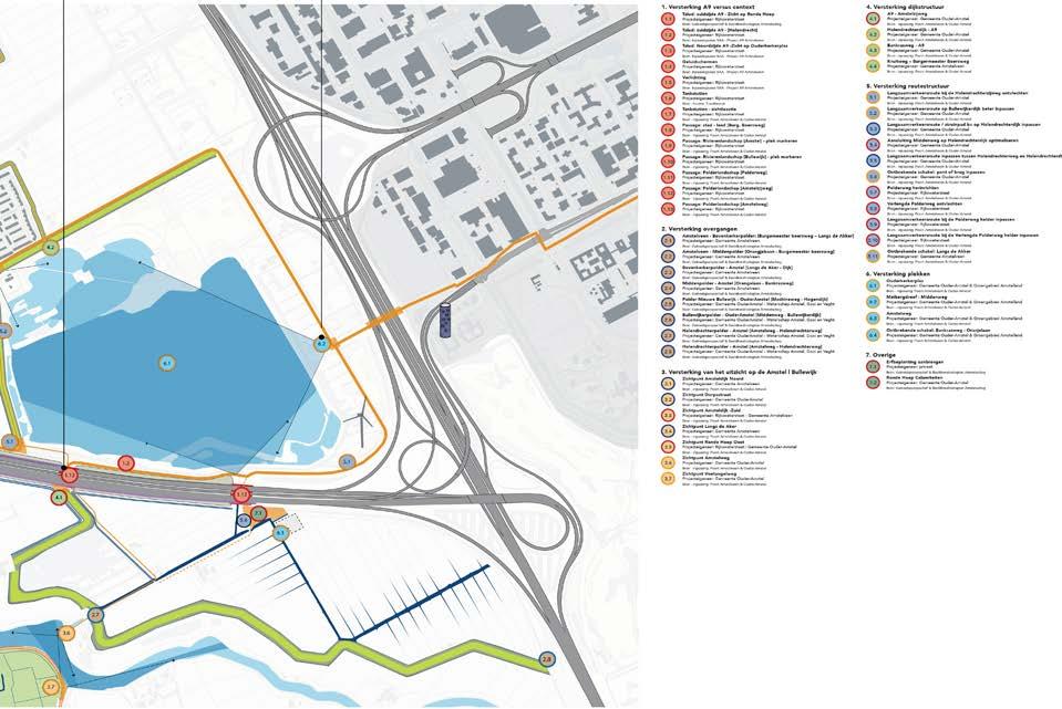 project description / Incorporation and widening of A9 in the head of the Amstelscheg location / Amsterdam, Amstelveen and Ouderkerk aan de Amstel client / Municipalities of Amsterdam, Amstelveen and Ouderkerk aan de Amstel design team / Joyce van den Berg (lead), Ed Buijs, Martijn Veentra collaboration / Rijkswaterstaat, Ouderkerk aan de Amstel size / 100 hectares