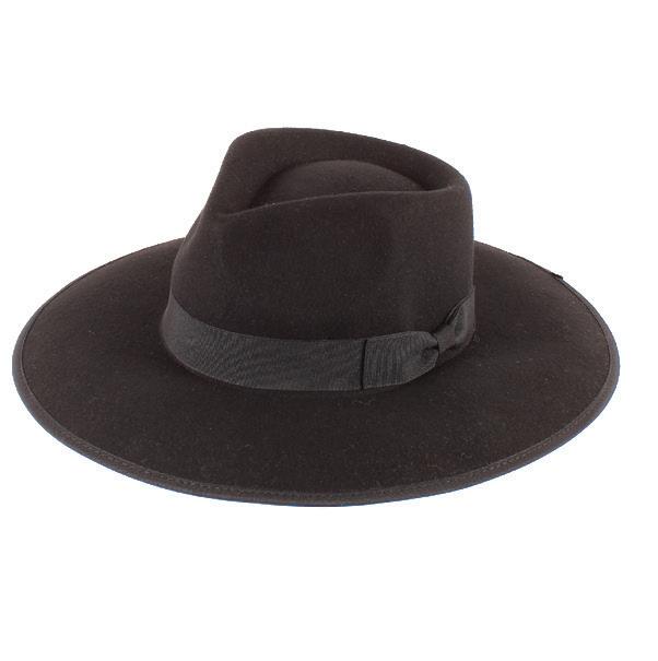 2.75” Flat Brim Fedora 7180 Wool Felt Black, Brown