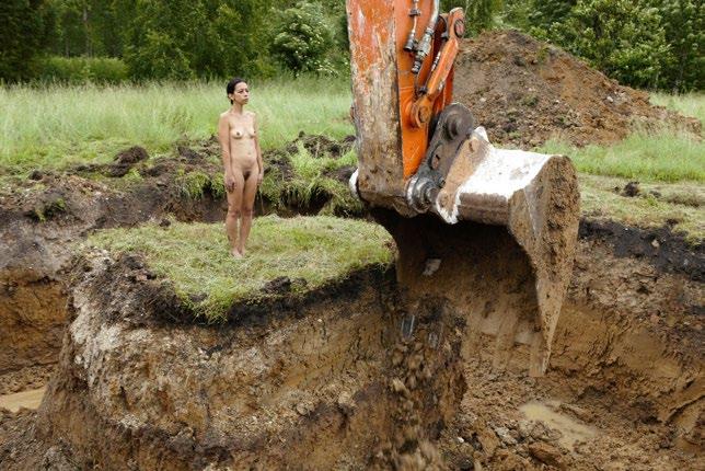 En Tierra, Galindo demuestra su interés constante por condenar las agresiones contra las personas por motivo de raza, género o clase social. Reconociendo los helicópteros, excavadoras y automóviles usados para secuestrar, desechar y enterrar los cadáveres en las Américas durante las guerras civiles, los regímenes dictatoriales y las narcoguerras, aquí Galindo centra su cuerpo contra la excavadora.