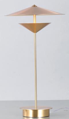 Geometric elegance with a modern twist. Featuring a bold conical shade and a graceful arc frame, this table lamp balances form and function—casting a warm glow that enriches any contemporary space.