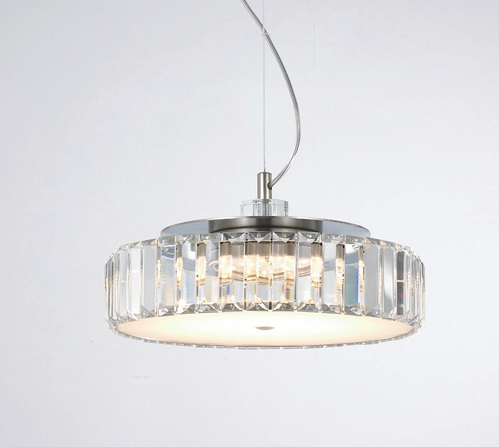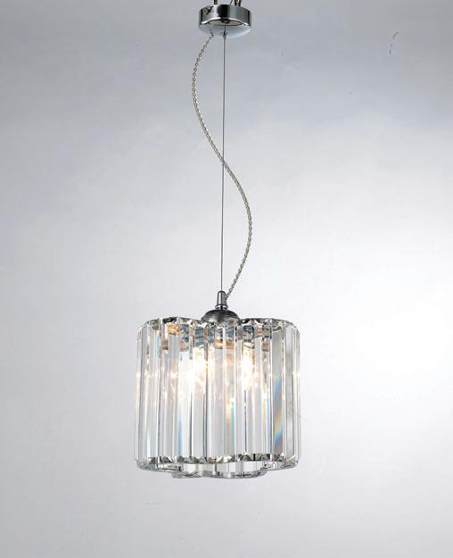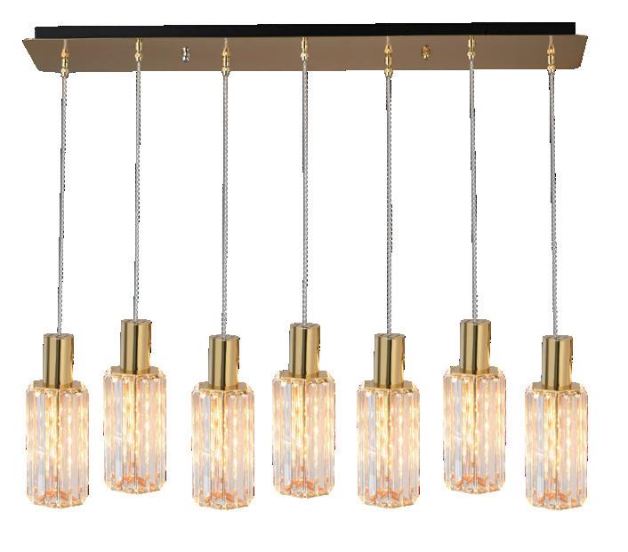 A refined pendant light with crystal-cut detailing and a sleek metallic finish. Its radiant glow and elegant design bring timeless sophistication to dining rooms, living spaces, and modern interiors.