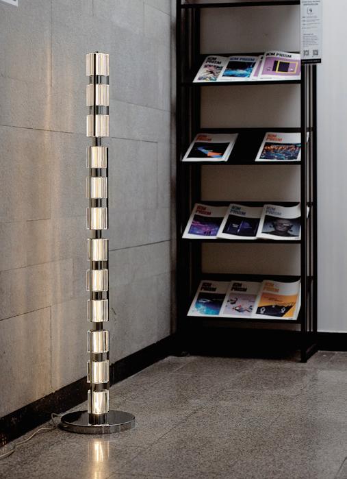 A modern pillar of light, designed with layered crystal-like accents that radiate warmth and sophistication. Its sleek chrome base and vertical glow create a striking statement piece—perfect for adding refined brilliance to contemporary interiors.