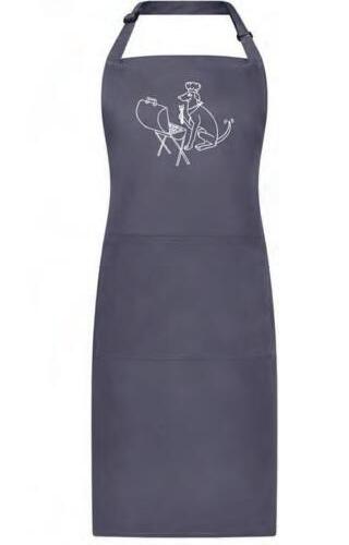 6. Adjustable Bib Pocket Apron Adjustable Bib Pocket Apron with embroidered galgo design. Easy care fabric. 65% Polyester/35% cotton twill. Colour: Steel £15.00