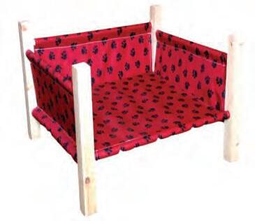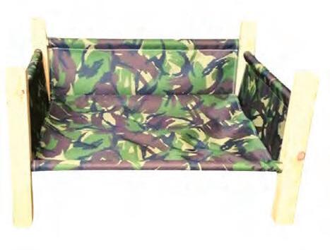 Unique flat-pack design! No hard base so is orthopedic. Raised for your pet’s comfort and hygiene. Sturdy construction without the use of nails, screws or glue, totally petsafe! All parts are replaceable. All fabric detaches for machine washing. Comes in a bag, great for holidays and camping. Available in small, medium and large. Colours available Camouflage, Cream, Green, Red Paws. £50-£70