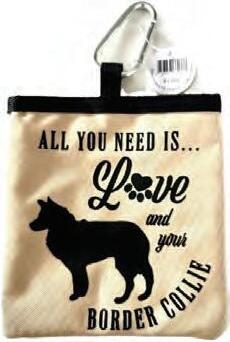 The perfect accessory for those dog walks, with the slogan, "All You Need Is Love And Your Border Collie". Size: 132mm x 142mm. Carabiner type clip £5.99