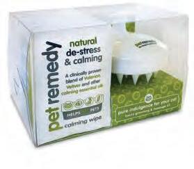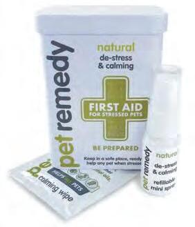 Helps calm without sedating. Use for stable, box rest, bonding, training and travel. Kit contains: 1 x 75ml Calming Spray, 6 x Calming wipes. £14.00 www.petremedy.co.uk