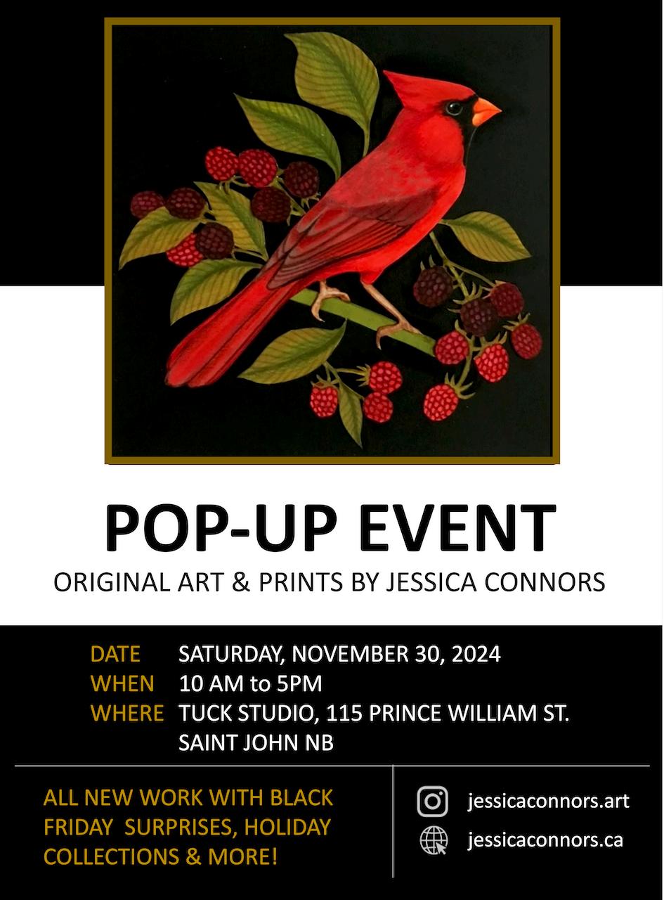 Jessica Connors is a Nova Scotia-based artist working primarily in gouache, coloured pencil, and ink Inspired by vintage botanical illustrations, her mixed media paintings often feature wildlife and free-flowing floral motifs