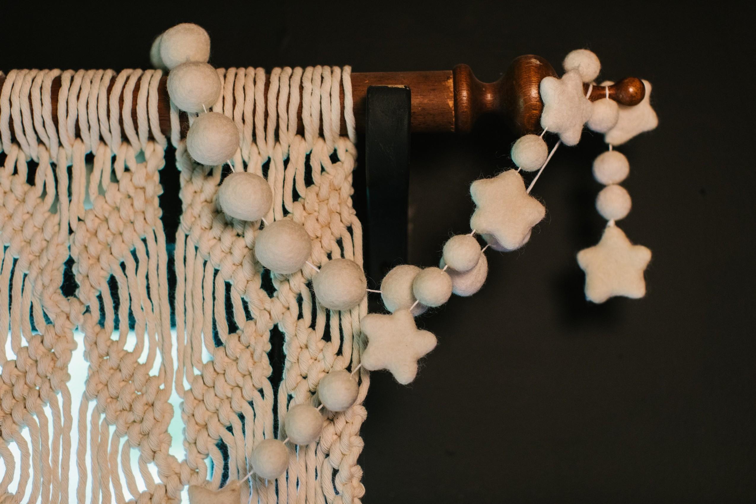 Naomi’s macrame valances add texture to the window and I threw some of our new felt garland from the shop on top for added holiday flair.