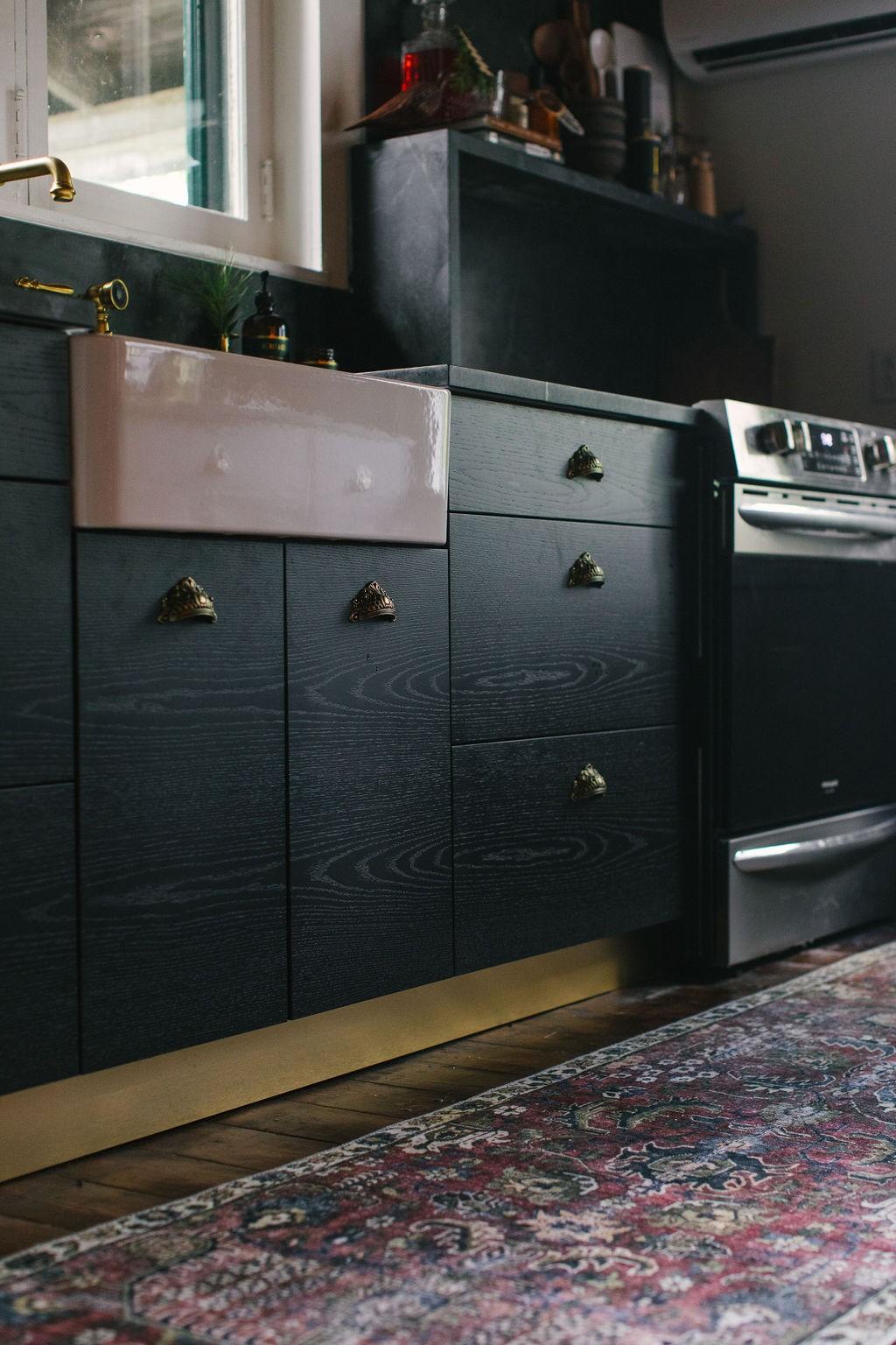 This primitive New Brunswick table is perfect for breakfasts or quick lunches! For our photoshoot we decided to create some fancy drinks (because photo shoot hours are very long hours). We chose the Jules area carpet as the runner to keep things cohesive. YES! I have the Lyla side chairs in walnut in the kitchen as well. It’s a testament to how comfy and versatile they are. (Or, as Robert says, “They give me the support I so richly deserve.”)