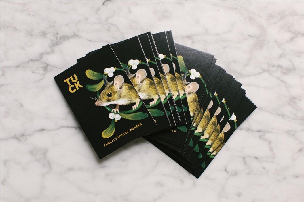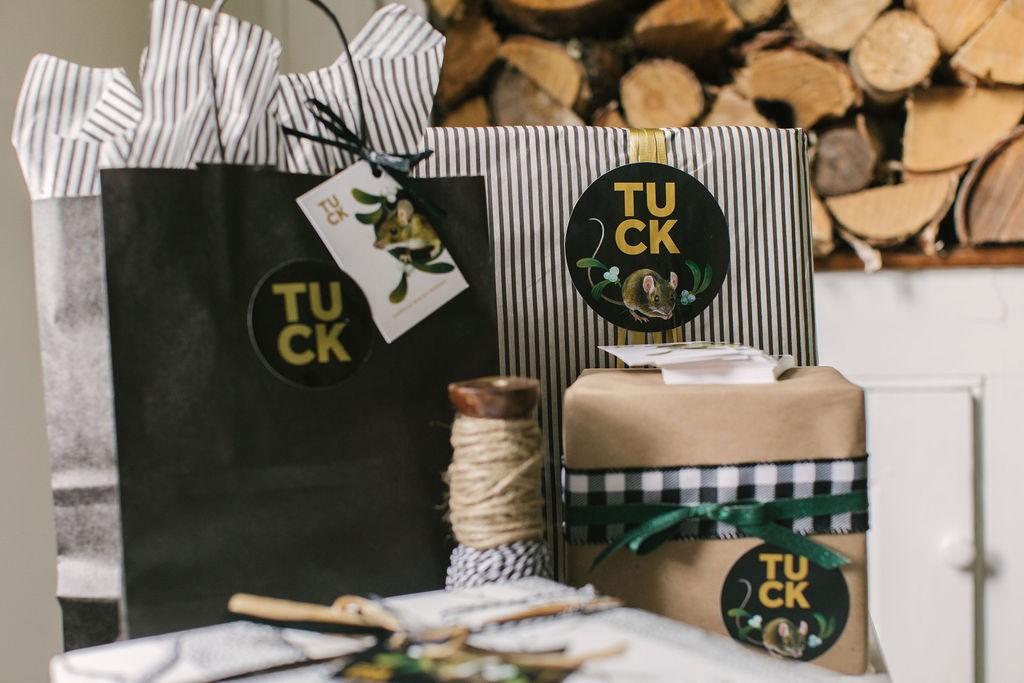 This holiday season, Tuck has collaborated with Jessica Connors, the Nova Scotia artist who created these original mouse illustrations for Tuck’s complimentary holiday packages. All bags will come with either a round label or a gift tag with your purchases. (While supplies last.)