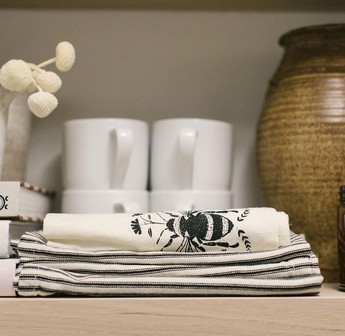 Tea towels are one of those necessary items that make a huge visual impact on a kitchen stove!