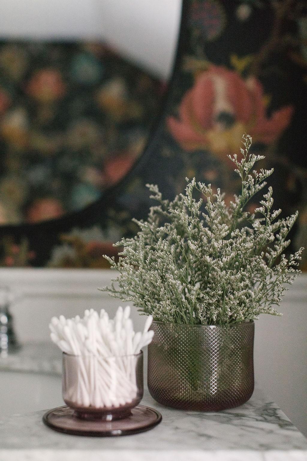 For my powder room I went for simplicity: White Limonium and Snow Berries from Galbraith Florists.
