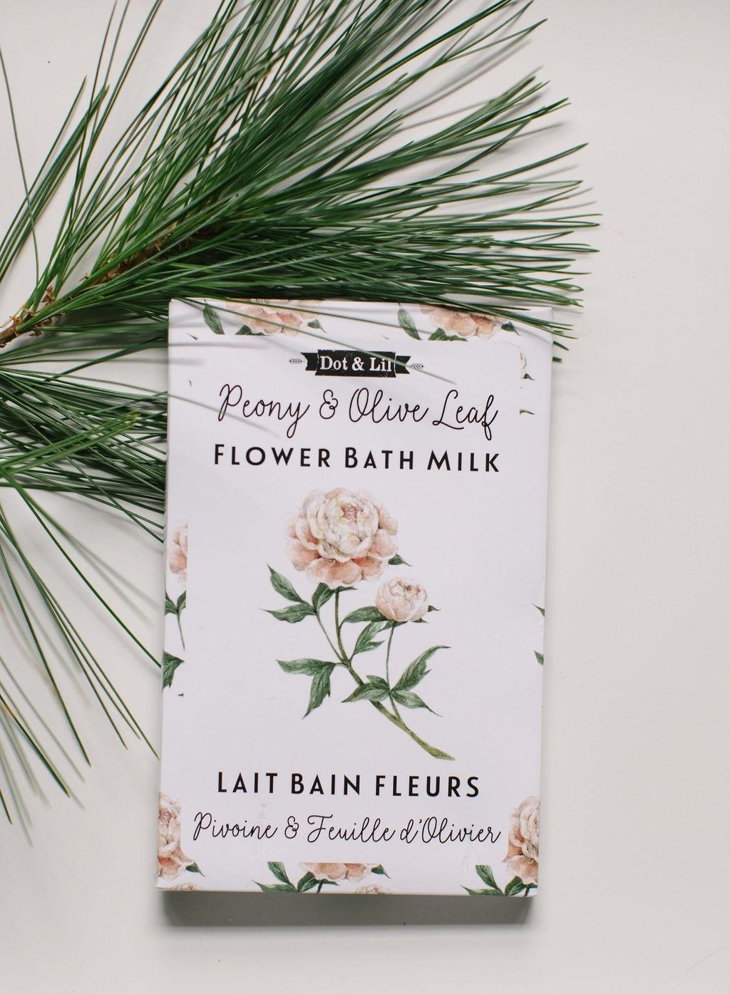 Peony & Olive Leaf Luxury Bath; Peony & Olive Leaf Candle; Peony & Olive Leaf Bath Milk
