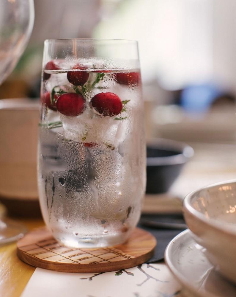 Finally, we bring it all together with a selection of tapered Danish candles and brass holders, place cards, rosemary & cranberry ice-cubes, and crisp clean red wine glasses for a good hardy red, your table is ready for brunch. (That I’m not cooking!)