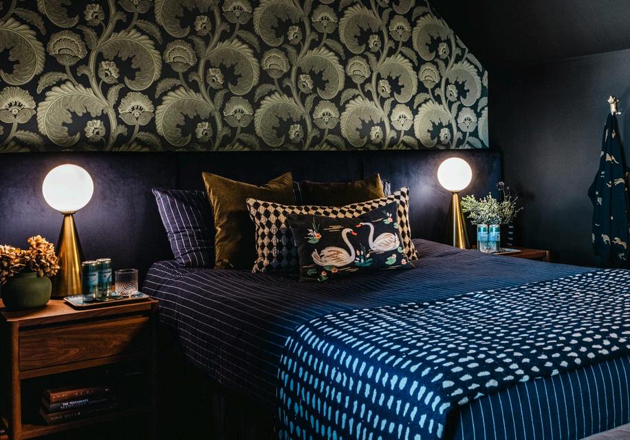 WealsoaddedinCalientepaint andourclassicblackTwilight ZonepaintbothbyBenjamin Mooretomaketheroomfeel particularlyVictorianandfestive!