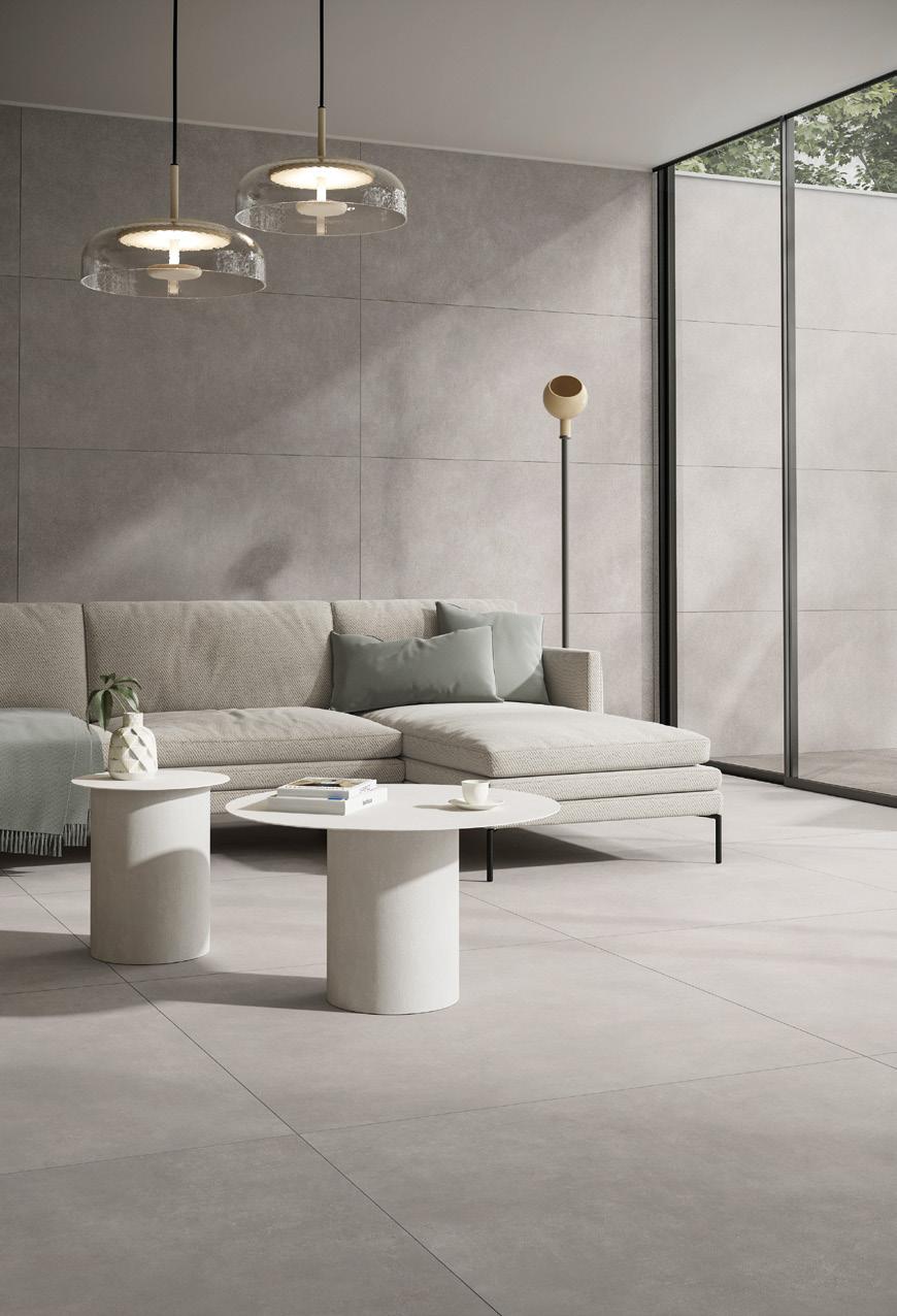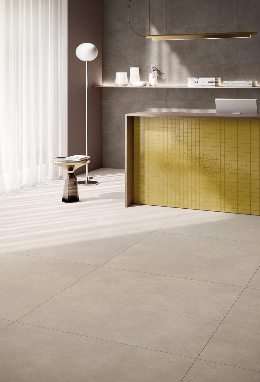 八种新色调搭配现代装饰方案,将混凝土的基本极简性义 与特别色彩对比和表面变化相结合。这一演变向典型的意 大利激情和优雅致敬,巩固了 GLOCAL 作为炻瓷全景参考 点的地位。