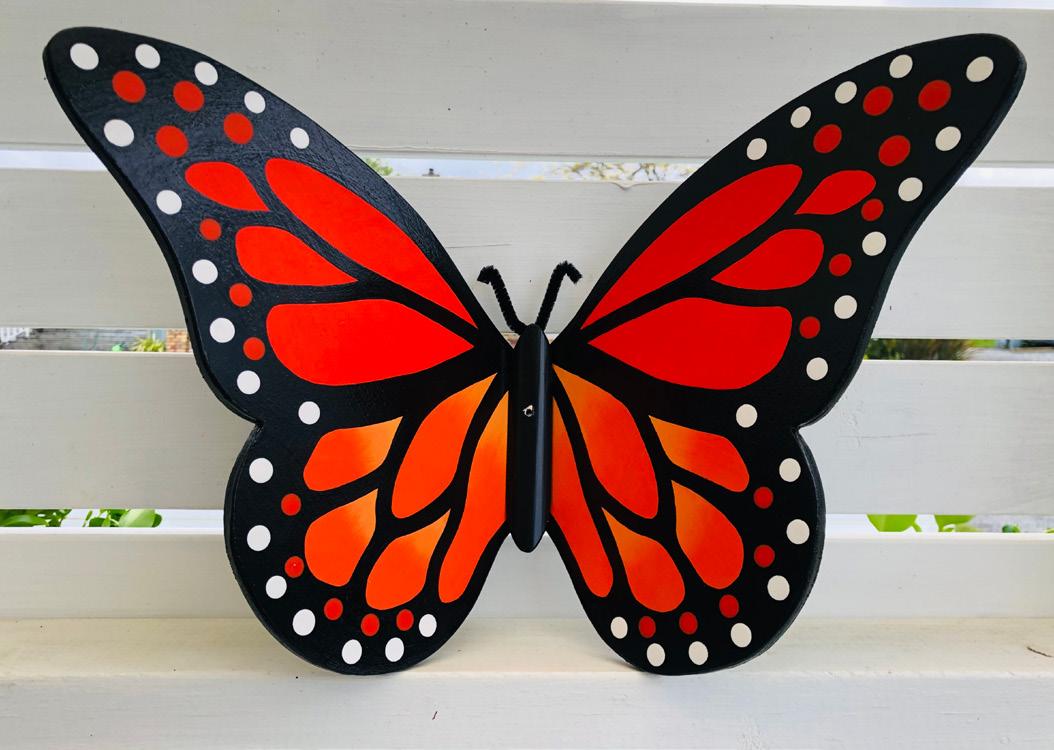 The hand-painted plywood Monarch butterflies come in three sizes including screws for attaching to your home, beach house or garden shed. www.FlutterDesign.co.nz/Kiwiana-Monach-Butterflies www.instagram.com/FlutterButterflyChairs_nzmade
