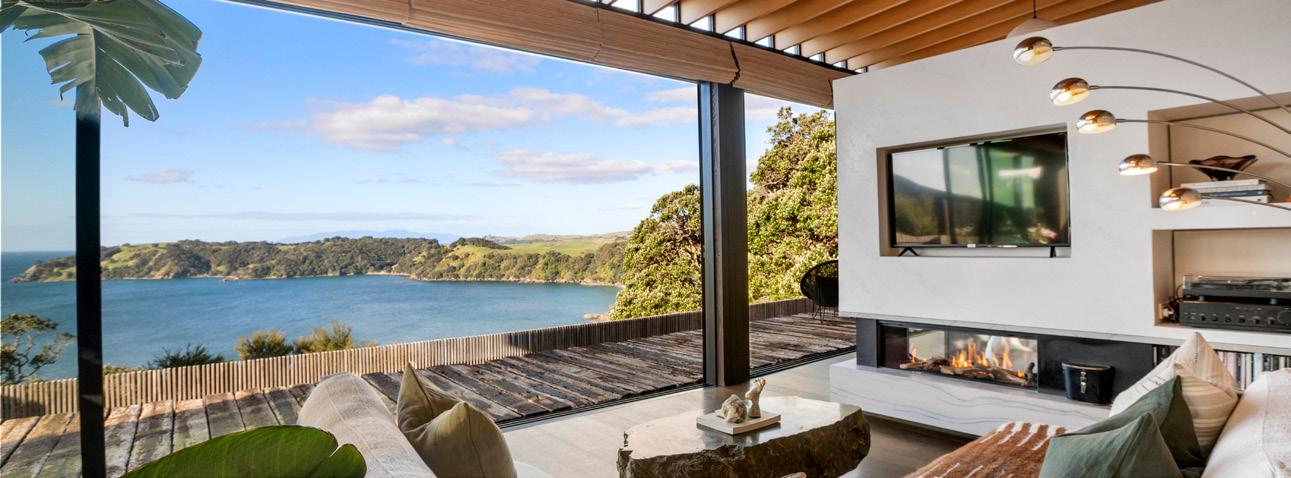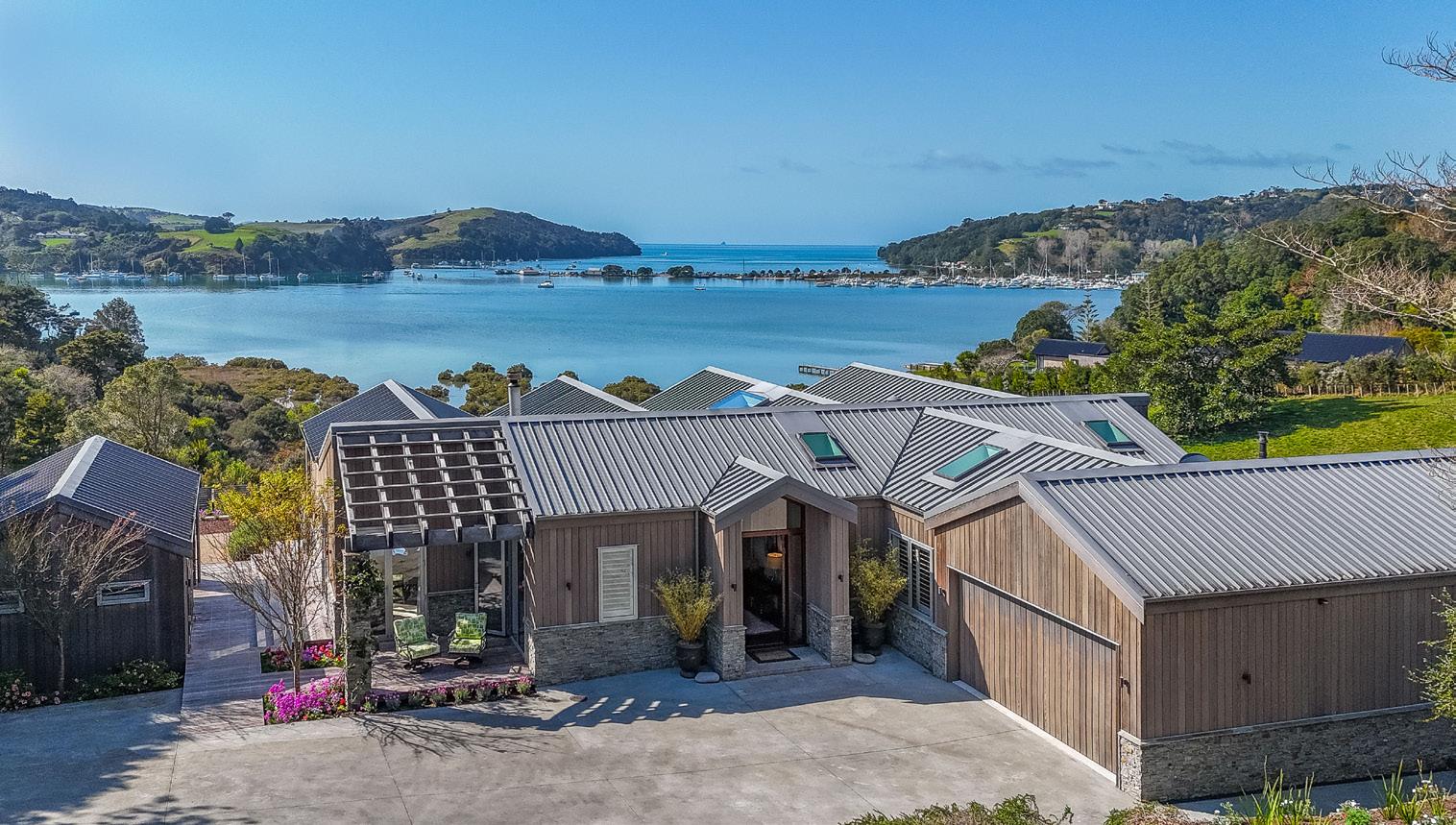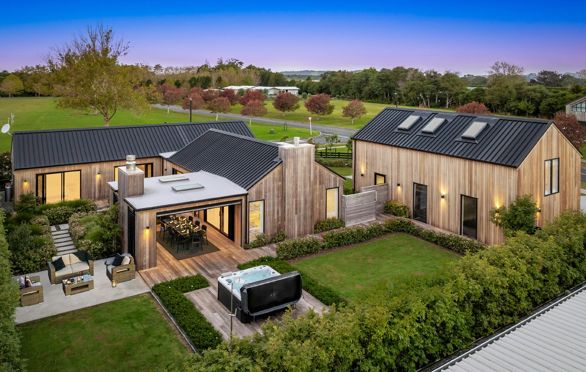 The main one level home has been thoughtfully designed with impressive detailing and practical features throughout, the sleek designer kitchen with copper tiling and accents, is the heart of the home. An impressive loggia warmed by the fireplace and side screens creates an additional entertaining area for all seasons. Long evenings and dining is a delight in this sheltered space, or star gaze in the spa pool with outdoor shower.