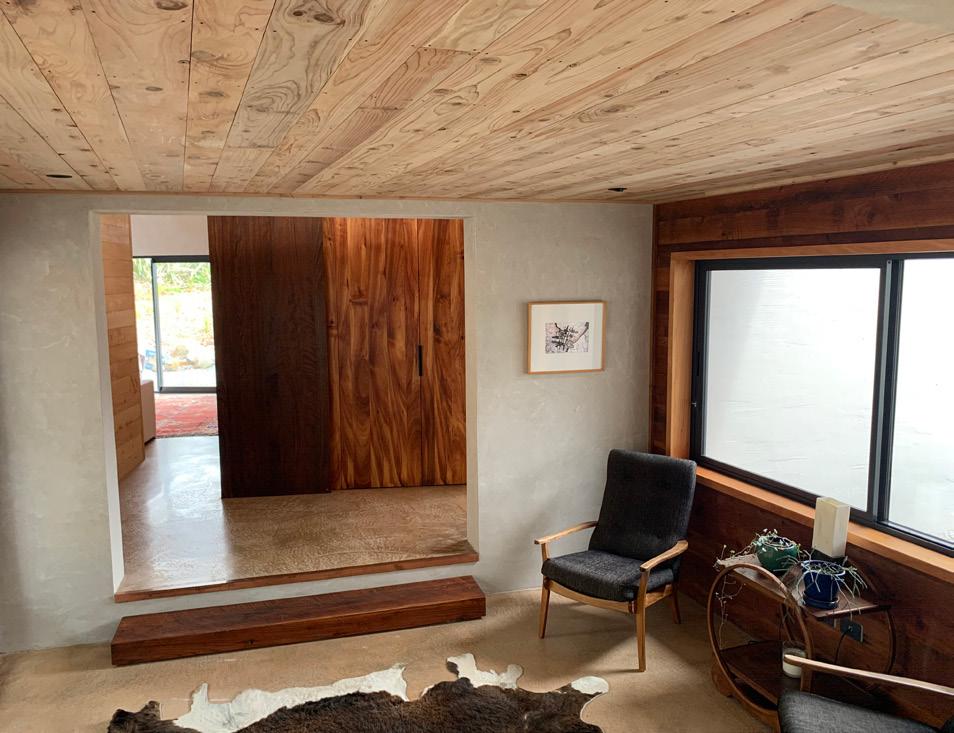 The loft studio complete with separate entrance, internal garage/laundry, consented kitchen and bathroom is bathed with light; the statement high ceiling, triple skylights and large sliding glass door bring the serene outdoors in, creating a relaxing space with views out to the water.