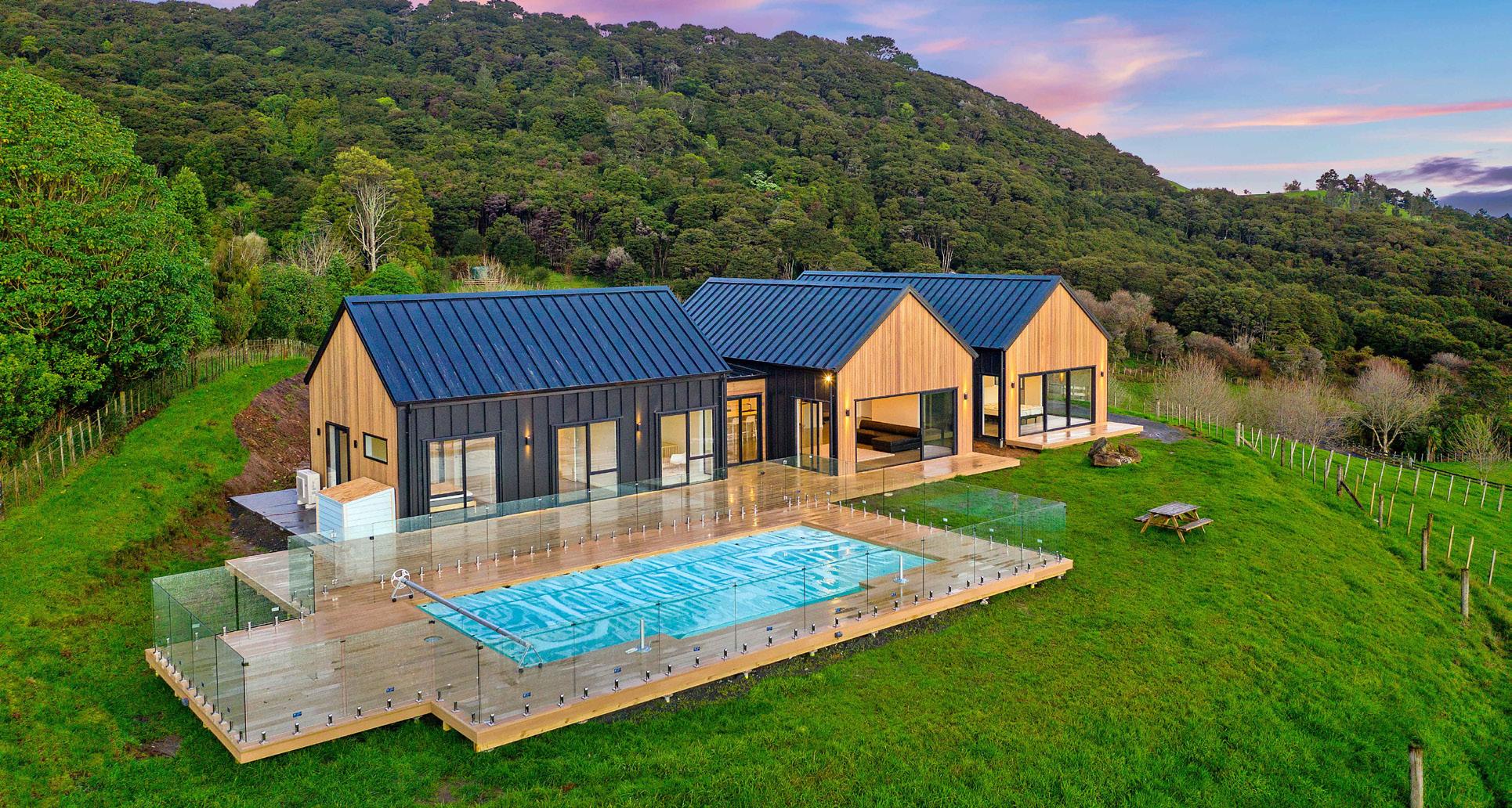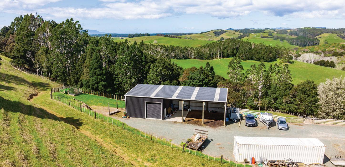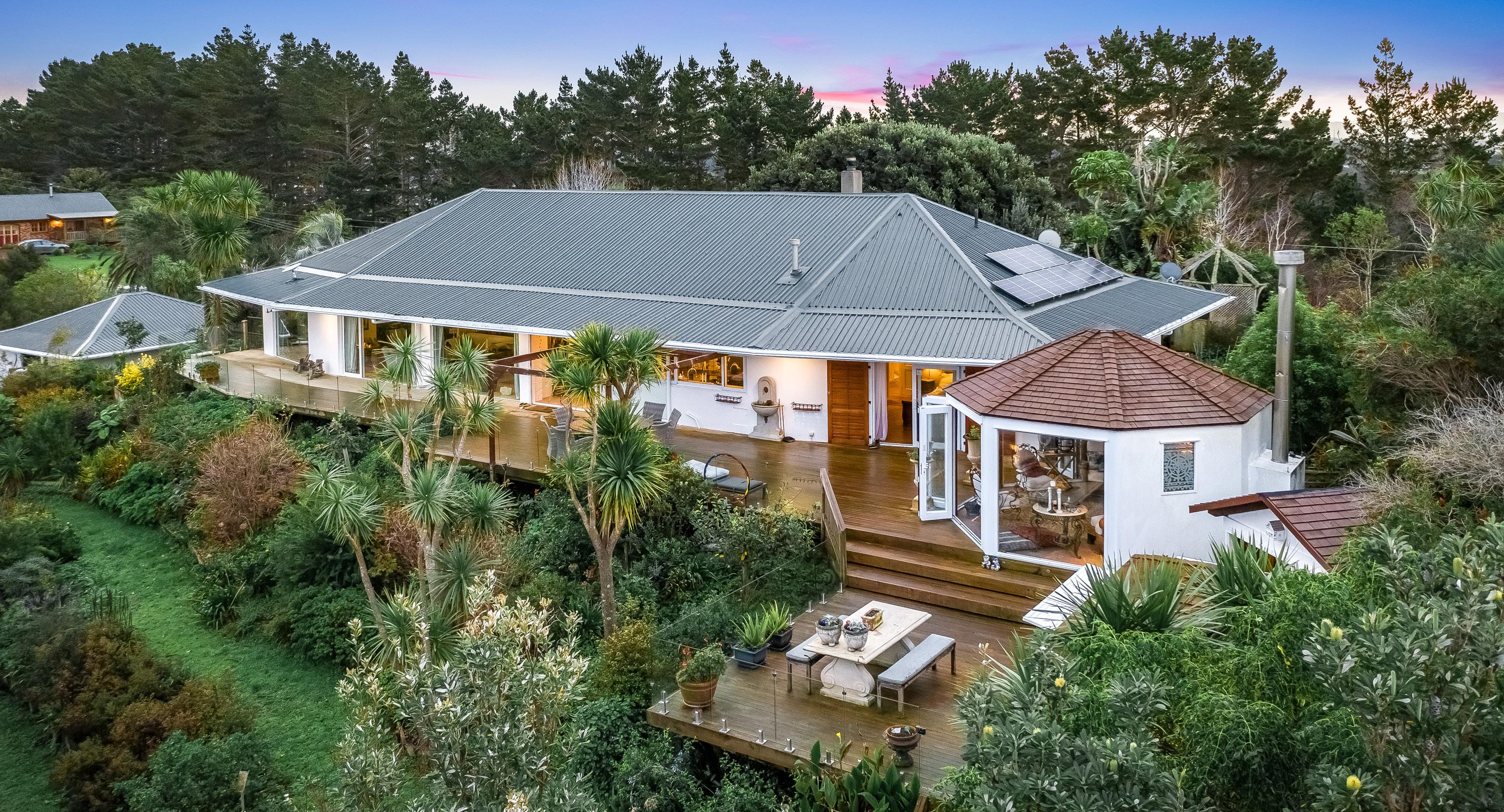 This idyllic slice of countryside is nestled within a supremely private landscape just five minutes from Warkworth township. The board and batten modern country home has been thoughtfully designed to make the most of its spectacular rural surroundings. 7.30ha of gently contoured land in six paddocks with clusters of mature trees, native bush and natural ponds. An entertaining delight where bi-fold doors connect semi-open plan living spaces to meticulously maintained north facing gardens. Wrap around covered decking, lush lawns and a pergola for the spa all combine to create wonderfully ambient living. There are three big bedrooms, two with ensuites, a generous family bathroom and separate laundry. The loft studio is bursting with potential and an additional paddock with a level platform and its own entrance way offers several value-adding possibilities. There is a three bay barn and for a real country escape, meander the land to a heavenly little cabin discreetly located in a picturesque spot amongst the trees.