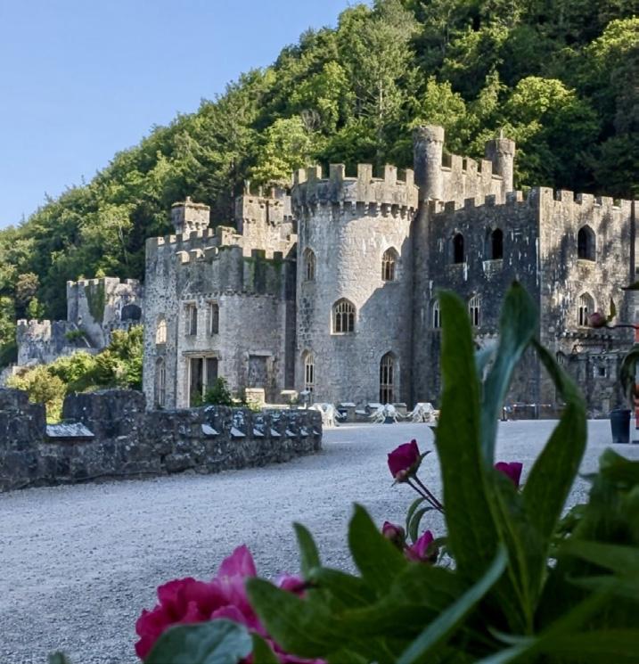 We continue to the spectacular Gwyrch Castle, which you may recognise as the Welsh setting for the popular show, I’m a Celebrity…Get Me Out of Here! Built between 1812 and 1822 in a medieval European architectural style, the castle was once a lavish family home before being requisitioned as part of Operation Kindertransport, a rescue effort of children in Nazi-controlled territory before the outbreak of World War Two. We learn more about the castle’s past on our guided tour here. While the main building remains an atmospheric ruin, there are various internal rooms to discover, including the Chapel designed by prominent Victorian architect, George Edmund Street. The far-reaching views of picturesque parkland leading to the Irish Sea (and even to Liverpool on a good day!) are not to be missed.