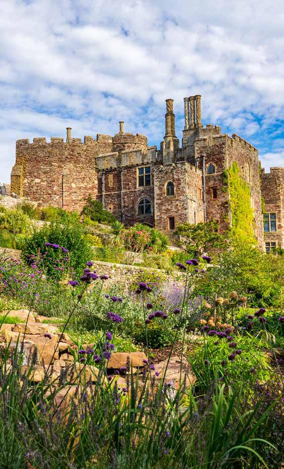For our first excursion we head to the imposing Raglan Castle, a late medieval fortress with impressive features such as the moated Great Tower of 1425 and the large hexagonal keep. Regarded as one of the grandest castles ever built by Welshmen, it was once a significant stronghold during the Civil War yet was deliberately slighted and, consequently, left to ruin for centuries. One of its looted treasures, a piece of historic Tudor wooden panelling, is on display in the visitor centre after it was found in a cow shed in the 1950s! The original structure of the Renaissance gardens can also be seen outside, which in their heyday boasted terraces, knot gardens and a water parterre.