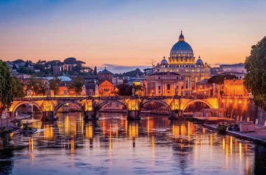 After the art immersion, we took a break to absorb Rome. A lovely spot to soak in the city is along the Tiber River, under the shade of the stately plane trees that line Via Lungotevere. e tree’s multi-colored bark and expansive canopies are more beautiful than the name might suggest. With St. Peter’s Basilica and Castel Sant’Angelo in the distance, we watched as the locals strolled along the banks of the gently flowing river.