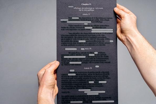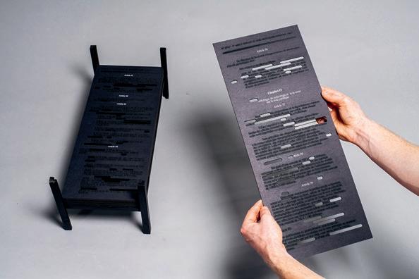 Moroccan Press Code laser cut into 32 pages of cardboard highlighting topics of censorship.