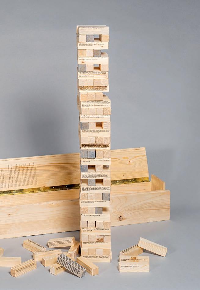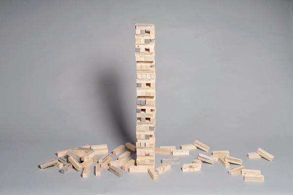 Jenga bricks consisting of legal verdicts from the Clarice Gargard case.
