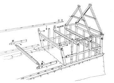 He traces the reason for the frame construction and, based on the linguistic foundation, also clarifies the origin of this construction method in Denmark. It does not only name a building type but rather the underlying process of production and the making. In this sense, language serves as the key to a profound understanding, tracing their origin and evolution. The reconstruction drawings are to be regarded as part of the scientific work, as they have a clear focus, are concise and contribute to the gain of knowledge in a meaningful and legible way.