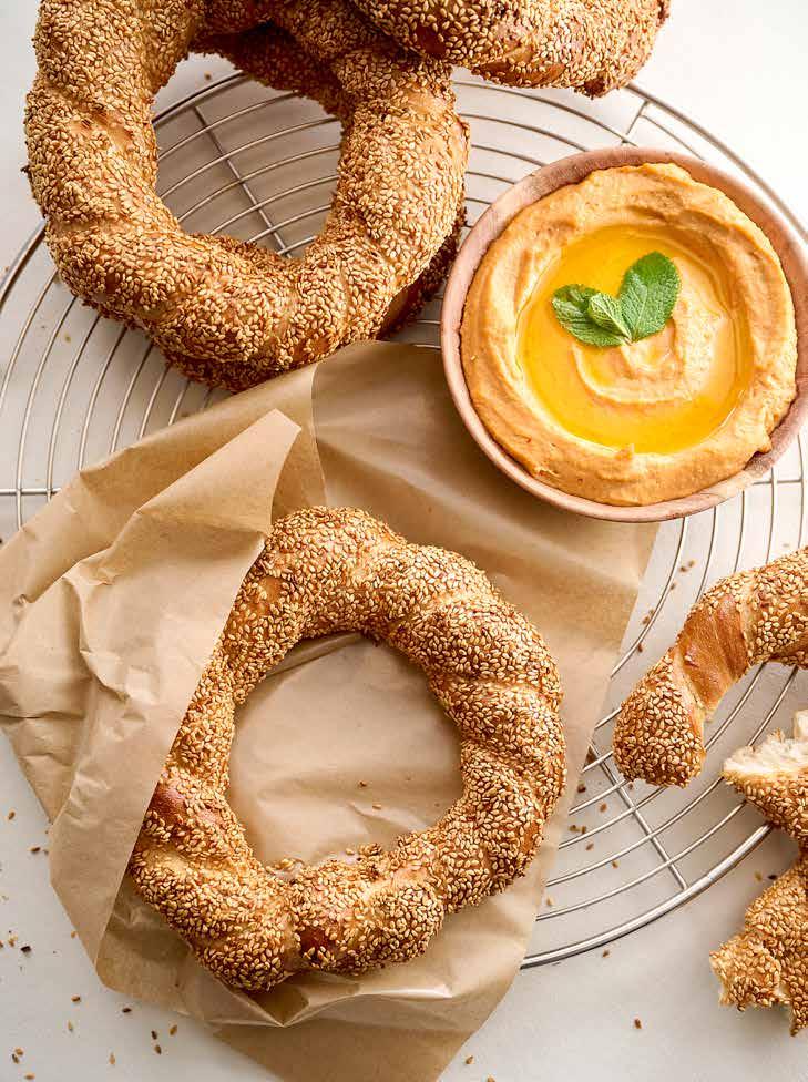 Simit är Turkiets motsvarighet till bagels men är lite segare och sötare. Efter formning doppas de i sirapslag och rostade sesamfrön vilket ger en otroligt god yta!