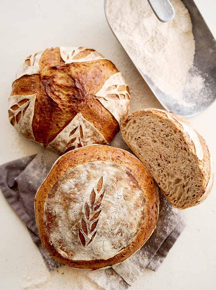 Levainbröd med speltsurdeg och hög andel fullkornsdinkel som får kalljäsa i kylen.
