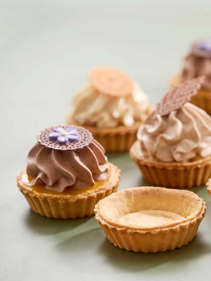 Färdiga tartskal med goda fyllningar tillsammans med smaksatt glasskräm.