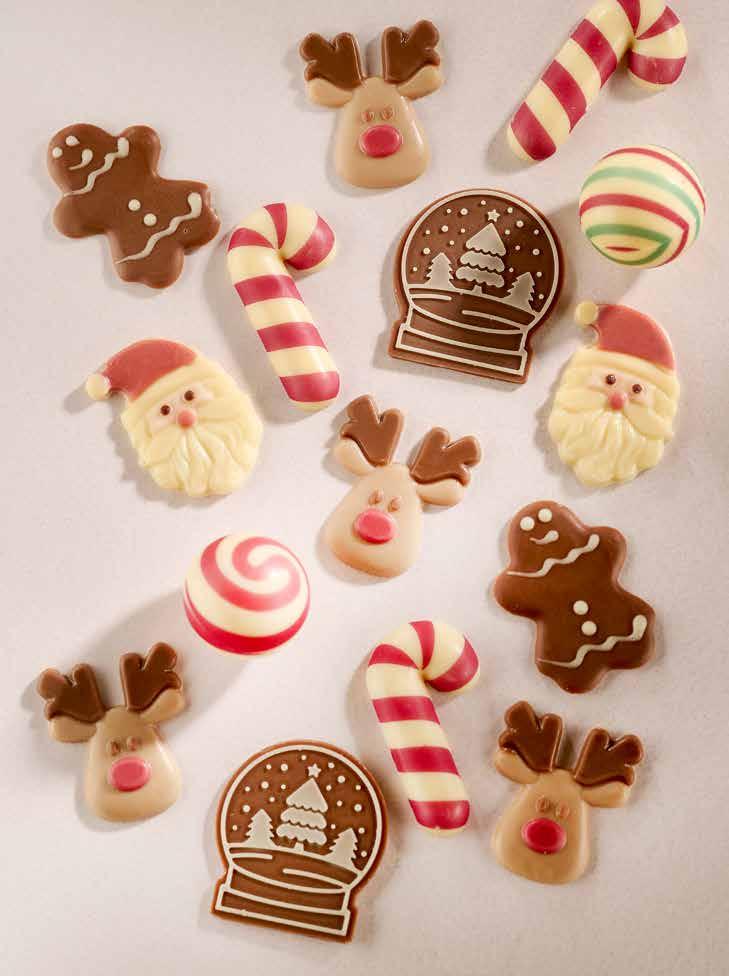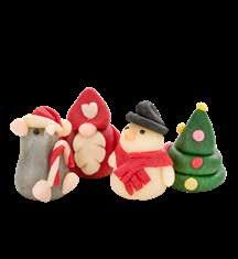 Använd marsipanfigurer från vår julmix till att dekorera dina godsaker på ett festligt sätt eller låt dina kunder ta med hem i en lyxig förpackning.