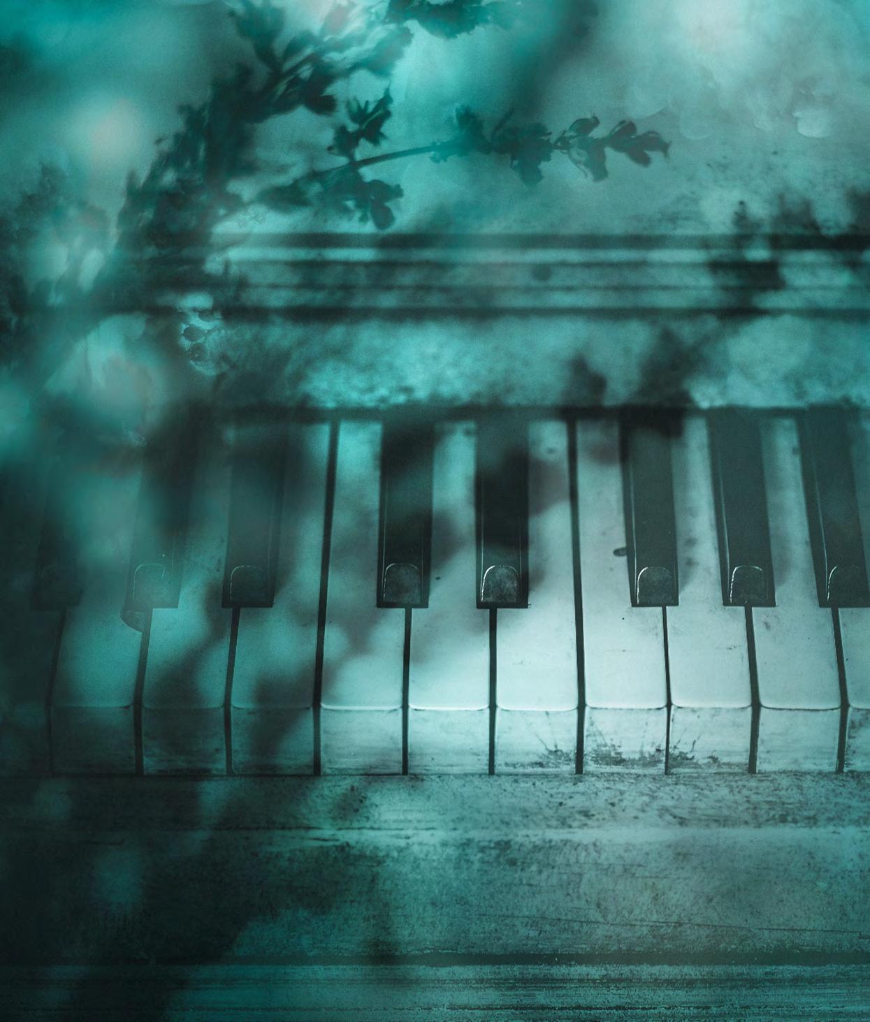 Michael Gutsche begann mit der Arbeit an seinem Bilderzyklus «Landschaften Graubündens» lange vor der Planung des Konzertprogramms, und die Inspiration dazu war nicht eine touristische Werbekampagne, sondern ein Artikel über den 2022 verstorbenen Schweizer Künstler Franz Gertsch. Gertsch spricht in diesem Artikel über seinen neuen Zyklus «Lapislazuli», eine Serie von ganz in Blau gehaltenen Gemälden von Pflanzen und Natur. «Blau hat seine eigene Mystik», sagt Gertsch in dem Artikel. Gutsche war inspiriert und suchte nach einem fotografischen Verfahren, um die Atmosphäre der Bündner Landschaften darzustellen – «mystisch, aber ohne Kitsch». Dabei stiess er auf ein fotografisches Edeldruckverfahren aus dem 19. Jahrhundert und vermochte dieses nach ei-